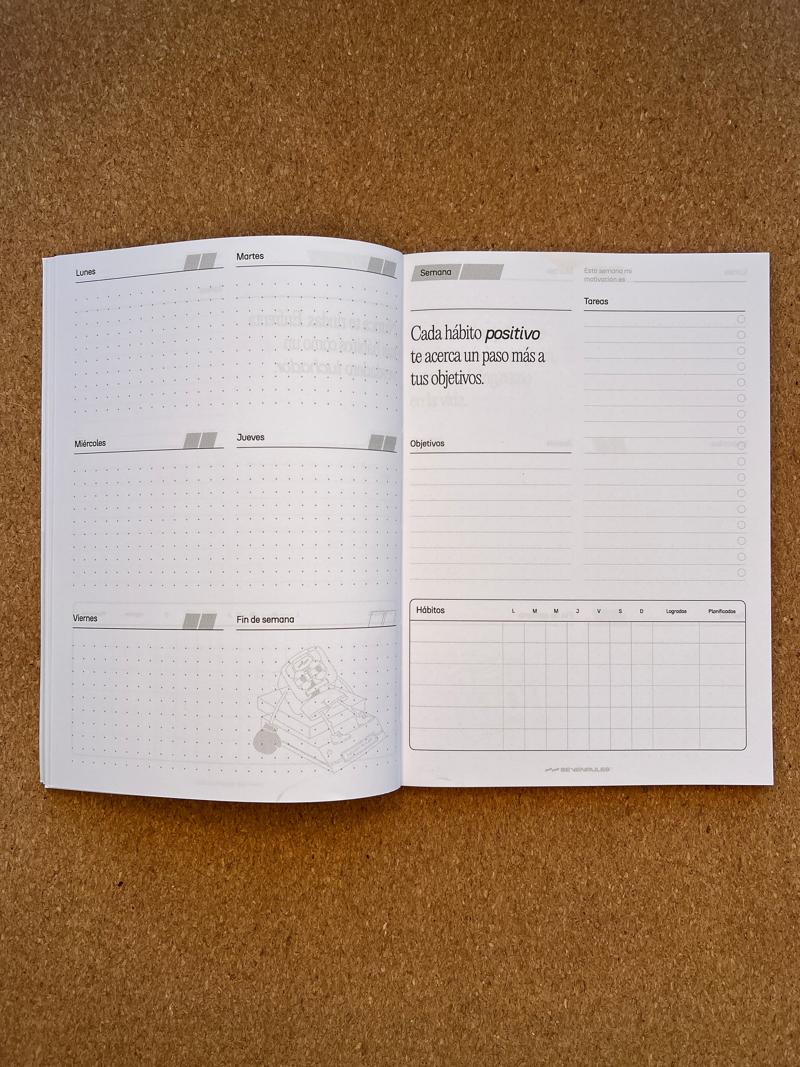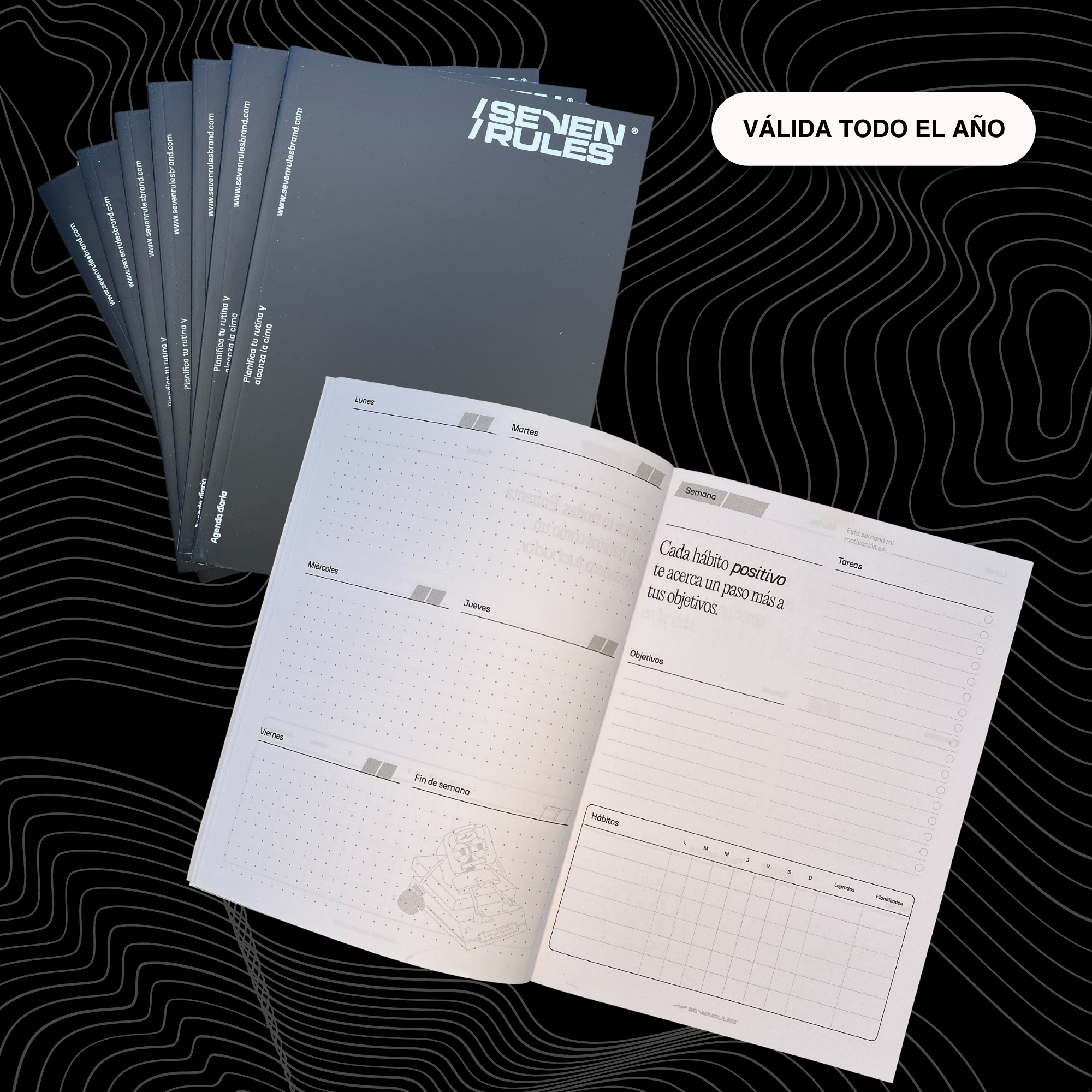Descubre la Agenda y Habit Tracker de Seven Rules, diseñada para maximizar tu productividad y fomentar el desarrollo de hábitos positivos. Elegante y funcional, esta herramienta es tu aliada perfecta para organizar tu día a día con una estructura clara y motivadora.