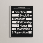 Lámina con las siete reglas que guían al boxeo, sobrepasan el ring y llegan a nuestras vidas.